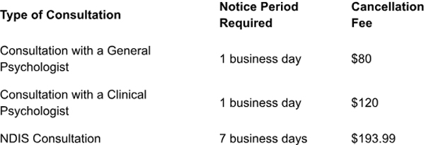 Late cancellations or missed appointments may incur the relevant cancellation fee listed